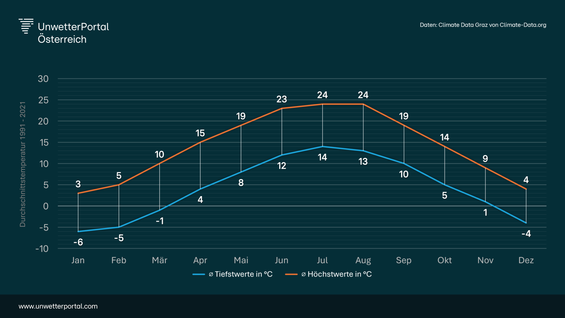 ⌀ Wärmster Monat: Juli | ⌀ Kältester Monat: Januar